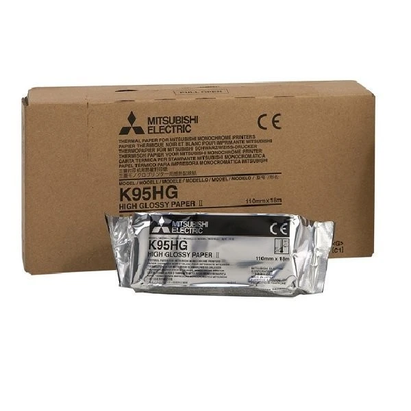 Papier do videoprintera Mitsubishi K95HG to produkt oryginalny, który zapewnia najwyższą jakość wydruków wyników badań USG. Przeznaczony jest do videoprinterów firmy Mitsubishi, typu: P95, P95D, P95DW. Papier posiada połysk, dzięki czemu wydruk jest atrakcyjny wizualnie i czytelny.