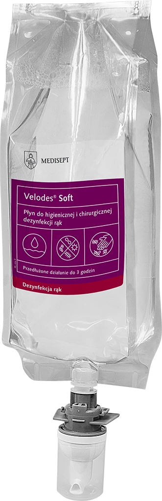 VELODES SOFT 1L - PŁYN ODKAŻAJACY RĘCE W WORKU DO SYSTEMU ZAMKNIĘTEGO